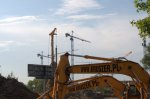 Here are a few photos I took while riding the street car to the city yesterday. The big cranes you see are set up at the new stadium construction site I mentioned previously. There is also a new highway that is being build at the same time as well, for now you can only see the pillars to support the future road above.