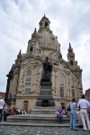 The church behind the statue of Martin Luther was completely destroyed, rebuild with some original bricks put back into its walls, and open just a few years ago. The gold cross set on top, was forged by a goldsmith in London who’s father took part in the bombing.