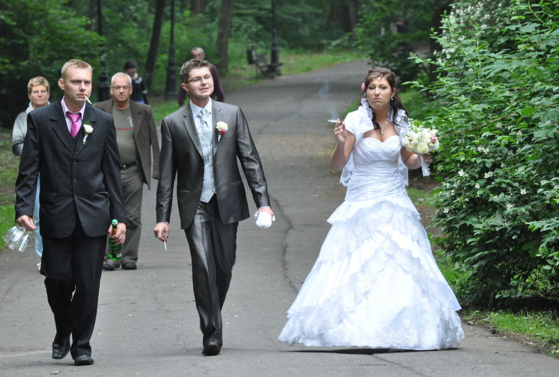 During our Street Photo class I learned that it’s pretty much up to pure luck to catch that perfect moment. I feel that I caught that right moment on the photo below. While walking through a park near a small castle we saw upwards of 10 couples on their wedding day taking their wedding photos. It was funny to see so many couples all in one place. The three people on the photo below were just coming out of the park from a photo shoot, all smoking, but all with cigarettes in different positions. This is my attempt at Street Photo.