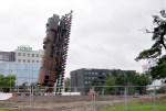 The idea of a locomotive-steamengine riding up to heaven appeared in the year 1994. Almost simultaneously, the vision was transferred on canvas and a painting “The train to heaven” was born. After 16 years of idee fixe it has reached its infinite form. Contrary to the laws of gravity, the 25 meters high installation appeared at Strzegomski Square. This corrosive locomotive TY2-1035 has undergone a revitalization, getting a second life as an urban sculpture. This was possible owing to the involvement of the City of Wrocław and Wrocław’s developer company Archicom which undertook this project to commemorate its 20 years of commercial activity in Wrocław.