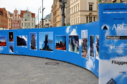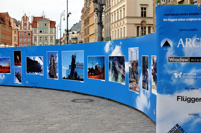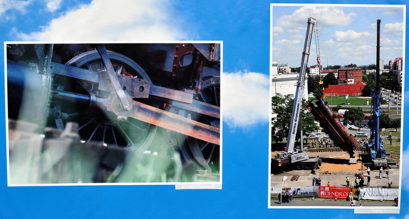 My friends over at Wrocław Daily Photo have already taken a few shots of “The Train to Heaven“, but there is a small display in the city square with photos and information on how the upright steam locomotive came about. Here’s some info straight from the poster: