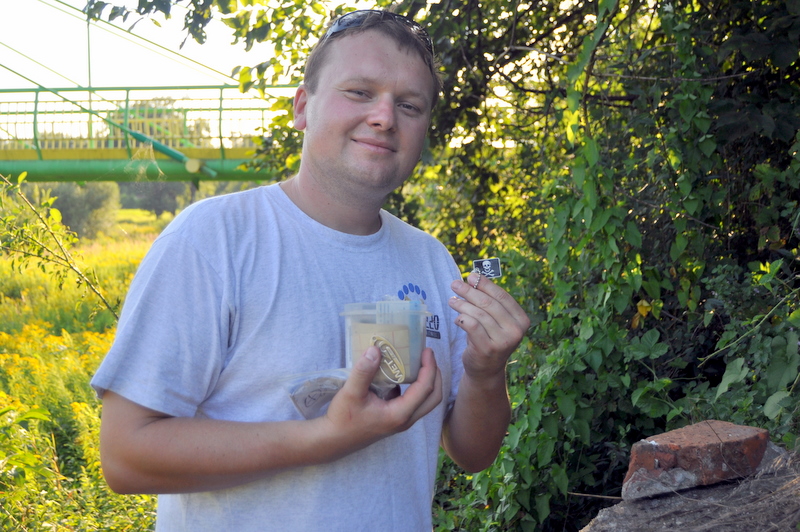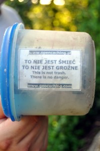 We found the first cache near a bridge on the river about one kilometer away from where I live. The basic structure of the cache is the same as in the U.S., it even has writing in English and Polish telling people that if found by accident it’s not trash and was left there intentionally. The notepad inside showed that it’s been there for the past three years and the last person to it was there just about a week ago.