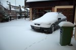 Major city roads tend to get some sort of a snow plow treatment at least once a day, but small neighborhoods such as mine are left all on their own. My street has become a single track road, where people just follow the grooves made by someone else right down the center of the street. My neighbor and I did a pretty good job of clearing our sides of the street and the sidewalk, all that pointless of course as we’re pretty much the only ones so the rest of the street still looks like a single center-lane road. Ohh… and it’s cold too. It’s -10C (14F) right now at 10am. But hey, I finally got the winter I always wanted.