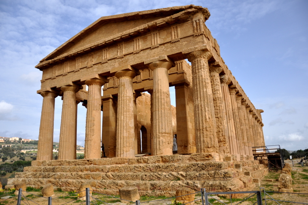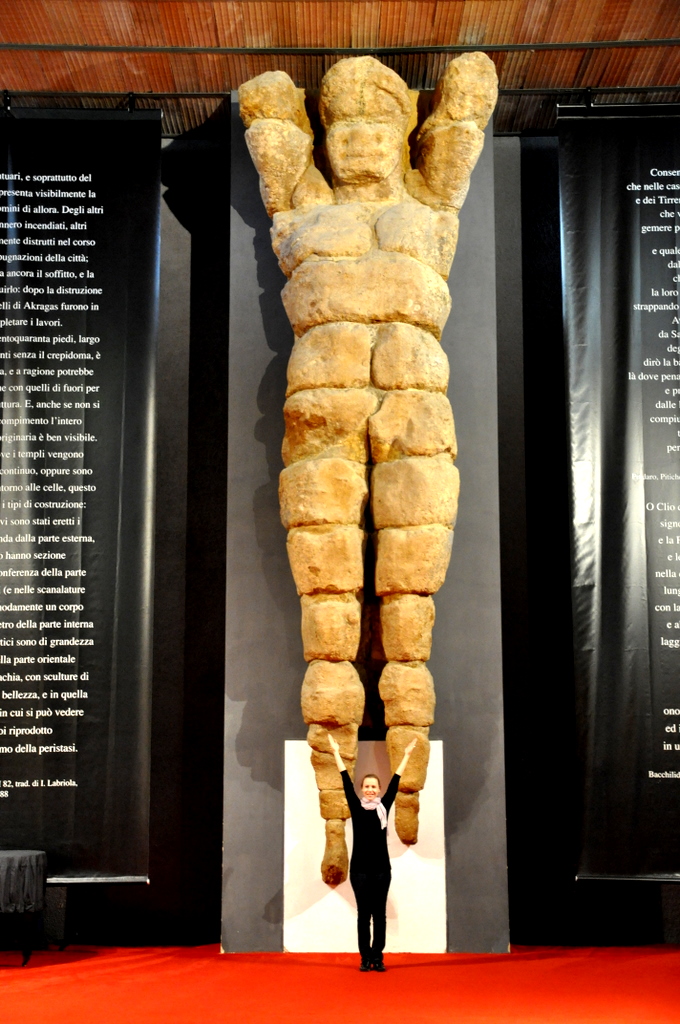 The roads eventually did smooth out and we were soon greeted by orange orchards on the south side of Sicily. It felt warmer in the south, but it was a beautiful day all around, and it was a nice change from snow and rain we had during the week. Our goal was to visit the “Valley of the Temples” and then maybe see a bit of the city itself. The museum near “The Valley” closed at 1pm so we visited it first. Inside stood a huge Talamone made of stone, the sheer size of it was unbelievable, and you can see it for yourself on the photo where Tammi, our driver and trip adviser, stood in front of it for scale.