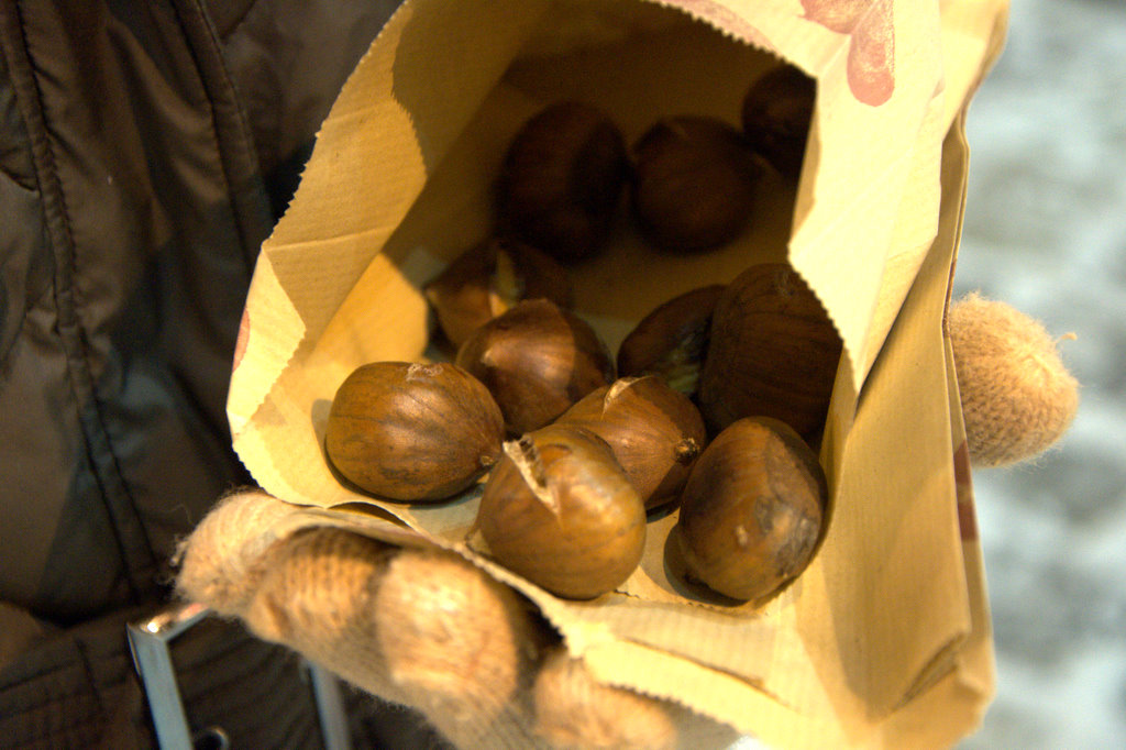 During Wrocław’s Christas fair I had my first taste of edible chestnuts. I must admit I have no idea where these things have been hiding from me all my life, they are really really delicious. Filling, too, I only had a few and felt stuffed, but that could also be due to mulled wine we had right afterward.