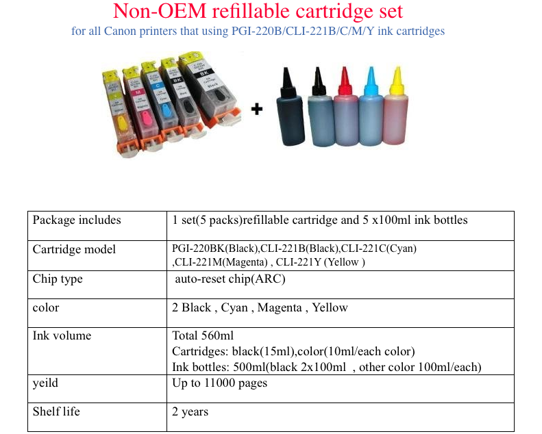 I checked on prices in Poland and it was listed for about twice the price I paid for it in the States, so I got me a a little AC 110v to 220v voltage converted and it’s all been working fine. Fast forward to ten months later and I need some ink. MP560 takes 5 ink cartridges because of its photo abilities, so I hop on Allegro.pl, the Polish eBay equivalent, and to my surprise can’t find any of the CLI-221 ink that I need. But searching for ink for the MP560 I get a bunch of CLI-521 instead. It was obvious that Canon’s European numbering was different so I ordered a set of 5 refills and that was that.