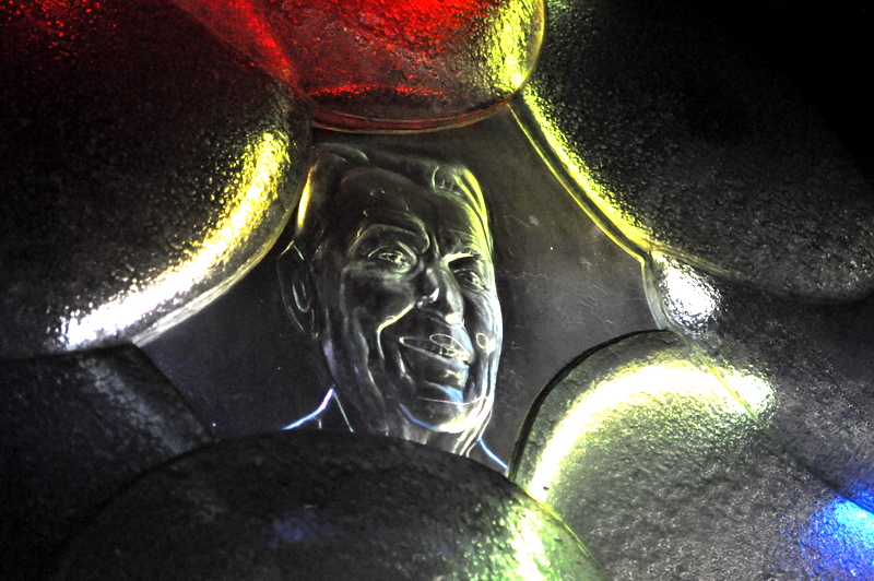 It’s pretty dark in the hall and with the sculpture lit up with flickering lights it’s difficult to get a good shot there, but below is my attempt at a few photos. The sign above says it all “To Ronald Reagan, for his struggle against totalitarianism, people of Wrocław”. The photo of the transfer hub was found on the internet.