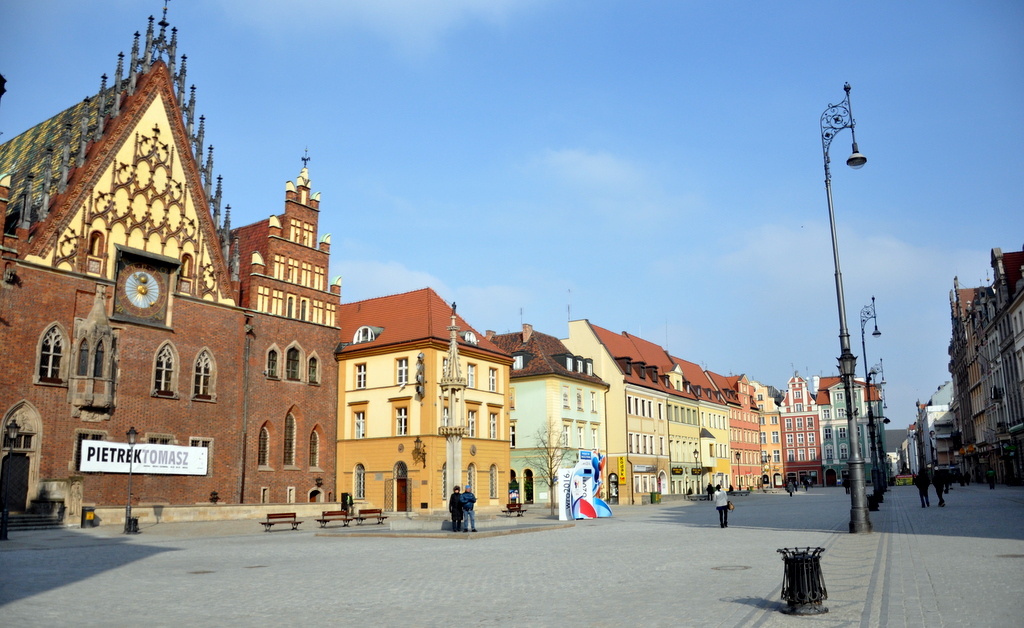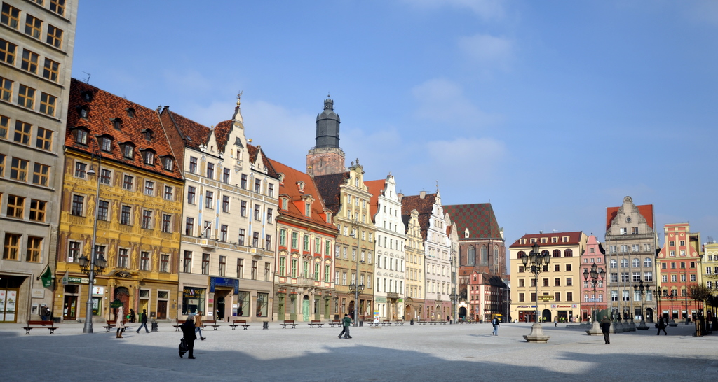 It’s been freezing cold for the past week with -15°C at night only warming up to about -5°C during the day, that’s 5°F at night and only 23°F during the day for my Fahrenheit friends. That is cold, and feels even colder when it just stays the same for days. But the weather has been absolutely beautiful with sun shining all day long and a pretty cloudless sky to boot. The intense sun really brings out Wrocław’s colors. Have a look.