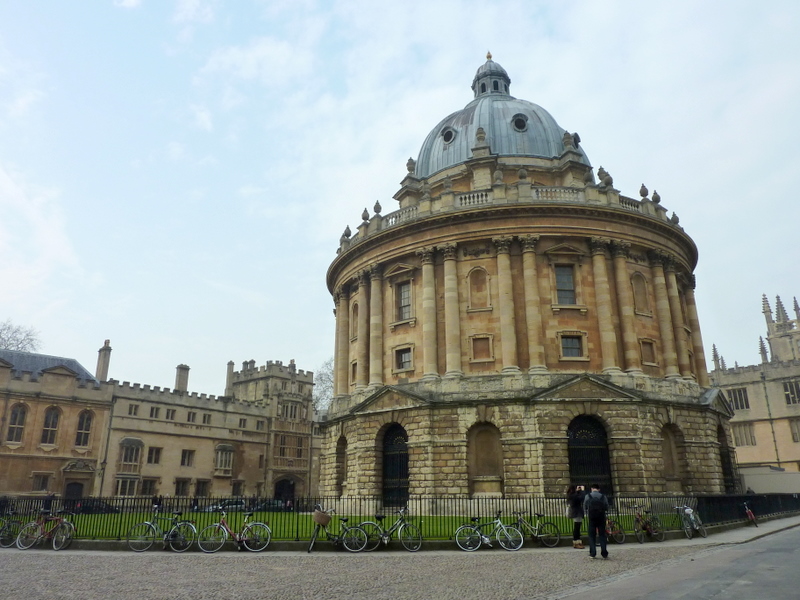 Oxford is most known for its medieval university and stunning architecture. We also got to know it as a very happening place with tourists all around, hundreds of bicycles chained to anything and everything, and very expensive car parking.