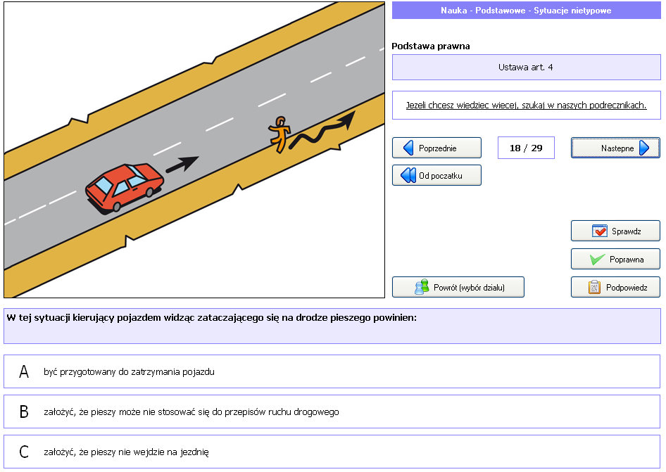The exam now is all computerized of course, mine was actually written 12 years ago, but the tricky part is that in a multiple answer question more than one answer may be right. No guessing game here for a 33.3% chance of getting A, B, or C correct. All three answers may be good, and of course at least one is. A lot of first aid stuff, too, since you are required by law to help a victim of an accident in Poland, no innocent by-standing here.