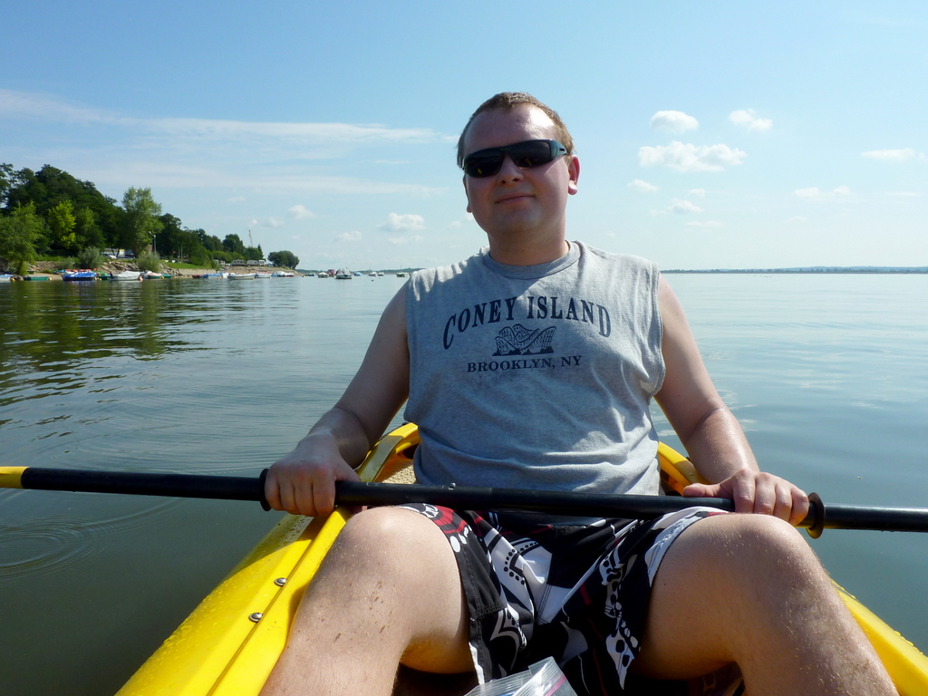 The weather was perfect and we caught a lot sun while paddling around; Karolina got her usual raccoon eyes sun burn that we all promptly made fun of, but all in good humor of course. I let Cichy and his girlfriend Julita (Youlita) borrow my boat, it was Julita’s first time ever in a kayak and considering she doesn’t know how to swim and was terrified at first she did a great job warming up to the idea of paddling.