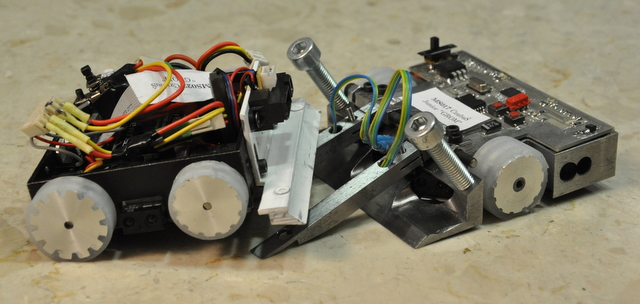 I write ‘ounces’ deliberately as some of these things were beyond small, they were tiny. The tournament was divided into several classes: freestyle where one could let creativity run wild and build a freaken monster of a bot, line follower: where the sole purpose of your cart-based bot is to autonomously follow a black line and get from start to finish in the fastest time possible, and sumo: where your battled other bots and pushed them off of the ring without crossing the line yourself, also autonomously.