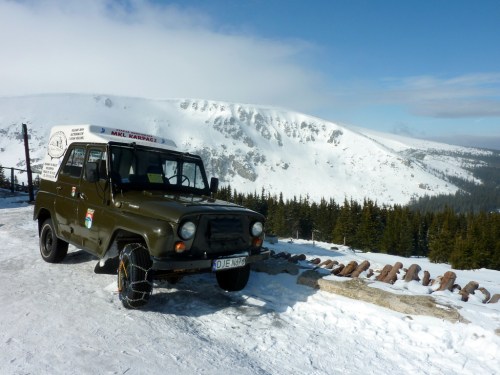 The weather on Saturday morning was just beautiful. The majestic view of snow capped mountains and the sun hitting it just right made for an amazing photo opportunity. Of course all I saw was an old Russian UAZ jeep so here’s a photo of that 🙂