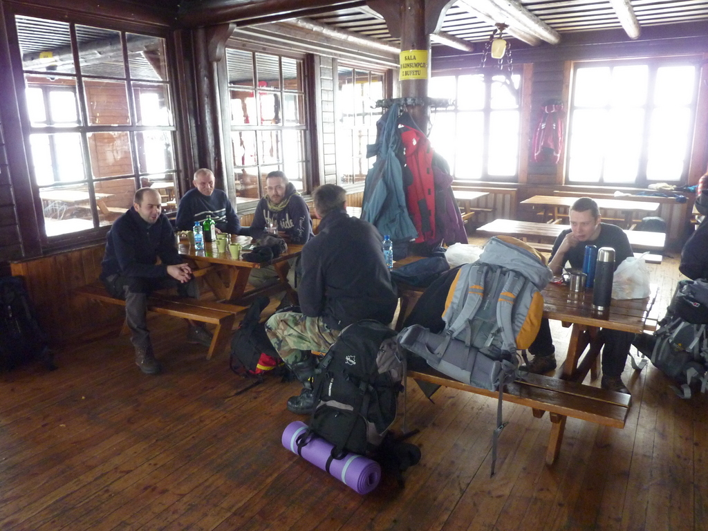 Our destination for the day was another hostel called Dom Śląski, or the Silesian House. The overall quality of hostel was much better then the night before and cheaper, too, with only 30 zlotys (~$9.50) per person per night. We had a big room all to ourselves and we soon found out why. The weather changed so fast we didn’t even notice when it went from a sunny sky to a snow blizzard. We ended up being almost alone at the hostel that evening since no one was really stupid enough to hike up that evening.