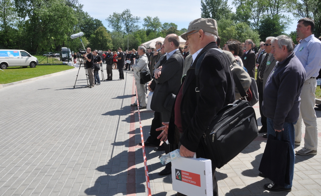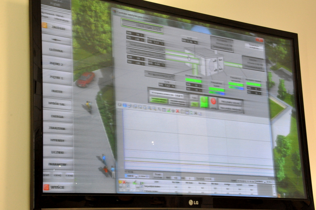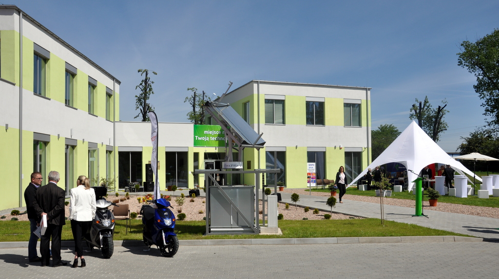 Yesterday was a grand opening of Center for Electric Technology located in Świdnica (Shveedneeca) about 50km south-west of Wrocław. The center consists of a 1,200 square meter building built with the latest and greatest in eco-friendly and renewable energy technology that almost makes the building completely self-sufficient. Solar panels, trackers, high efficiency air turbines, and a few other building tricks are all managed by a centralized BMS (Building Management System) that allows computer precision in maintaining air conditioning, heating, ventilation, and electricity use through out the building. Fun stuff includes playing around with switching off the lights in a room somewhere in the basement with a click of a mouse.