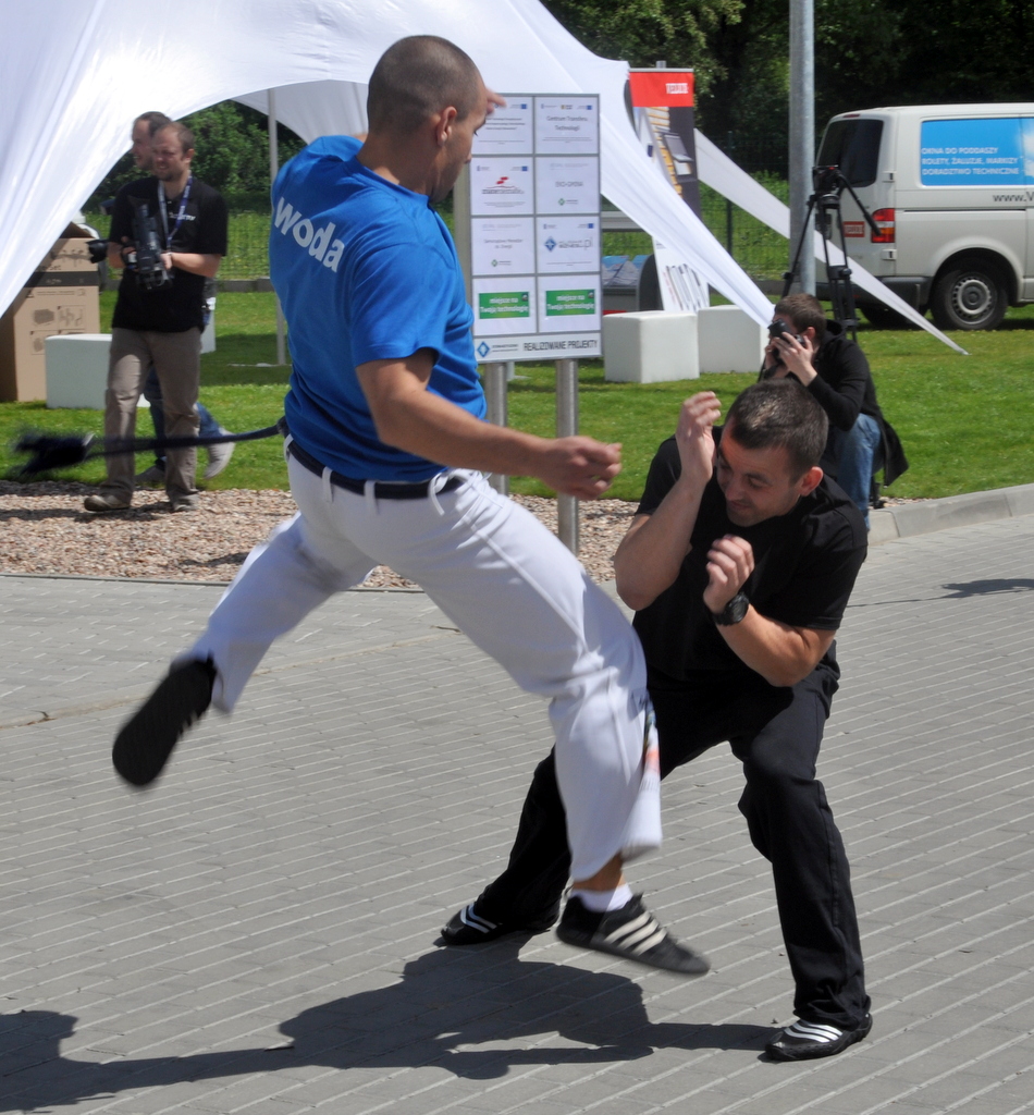 After a few speeches given by local hot shots such as the president of Świdnica and officials from the Lower Silesia department of electric technology, there was a short Capoeira presentation that meant to represent how the four classical elements (earth, fire, wind, and water) kick ass and chase away bad energy all dressed in black representing oil and coal.