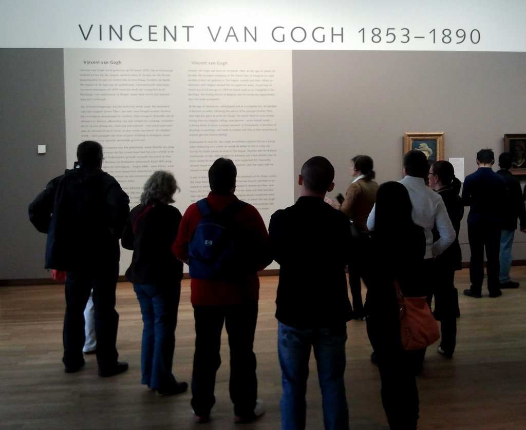 Van Gogh museum is a huge building with a lot of Van Gogh’s work on display and plenty of people chasing after you for taking photos which are prohibited inside of the museum. The layout of the building is very well though out with Van Gogh’s entire life timeline spread into section all on one floor. Starting from childhood you’re given short descriptions about the time frame you’re standing in front of and works he had done at that time. Even for an art idiot such as myself it was clear to see his progression and experimentation on canvas. I’d say the bottom floor, which was all Van Gogh, was very impressive. But…there are two more floors and a basement full of art, and that’s where the WiFi came in handy 😉