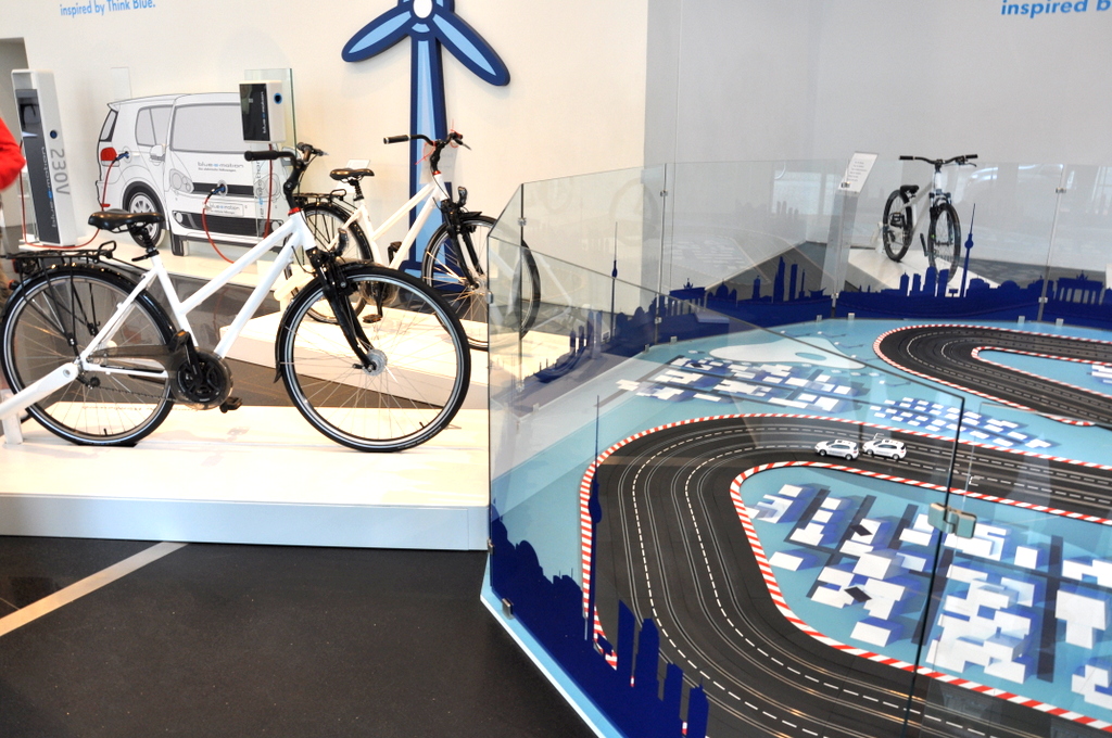 It was at the eco-room of the dealership that I quickly forgot about the Veyron and my future Passat, because I found what was the coolest toy ever; bicycle powered slot cars!