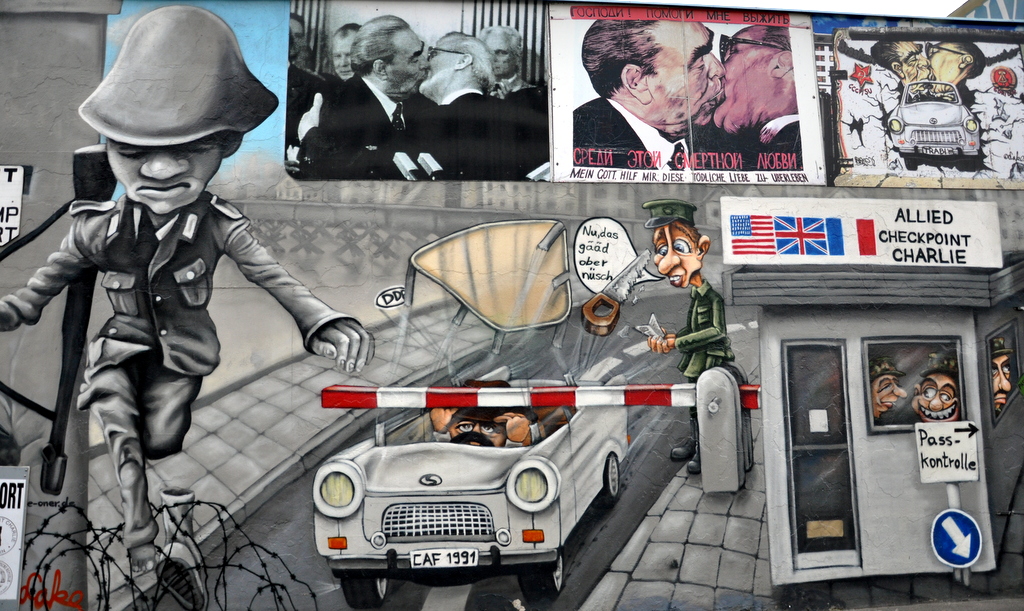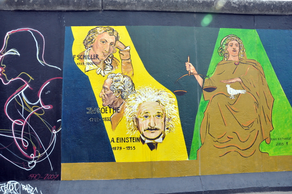 The East Side Gallery, not to be confused with the Far Side Gallery :), is a 1.3km long section of the Berlin Wall that was left intact as an international memorial for freedom.