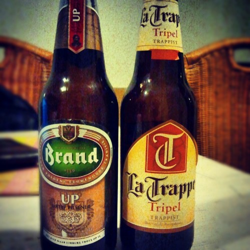 Today however we tried something new and in both cases the beers were a miss in my opinion. Bitter and rough. Brand is a pilsner supposedly done by Heineken, La Trappe is a dark beer but tasted crappy with a strong alcohol aftertaste. We honestly should have gone with a six pack of Heineken.
