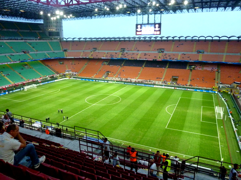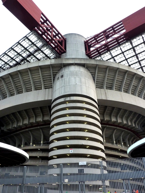 The game took place at the San Siro football stadium, the oldest stadium in Italy and supposedly the fourth oldest in Europe. That latter part I found out through a conversation with a Milan fan at the stadium and haven’t been able to fact check it online. In any case the stadium was built in 1925 and has been progressively rebuilt and remodeled in 1956 and 1989 to where it now sits a whopping 80,000 fans per game. The photos below will most likely not do it justice, but the stadium, quite simply, is huge!