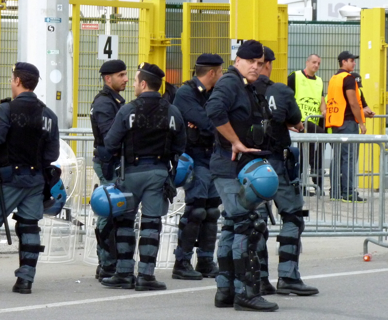 Getting there was easy, just take the red metro line to the station with all the singing fans. Luckily for us we quickly realized that the singing wasn’t coming from Milan fans, but from the happy and a bit intoxicated Anderlecht fans for whom special buses awaited just outside the station. At first I thought “how cool, a bus will take us straight to the stadium”, and then I saw hundreds of Police officers if full riot gear and immediately knew that this wasn’t my bus.