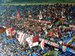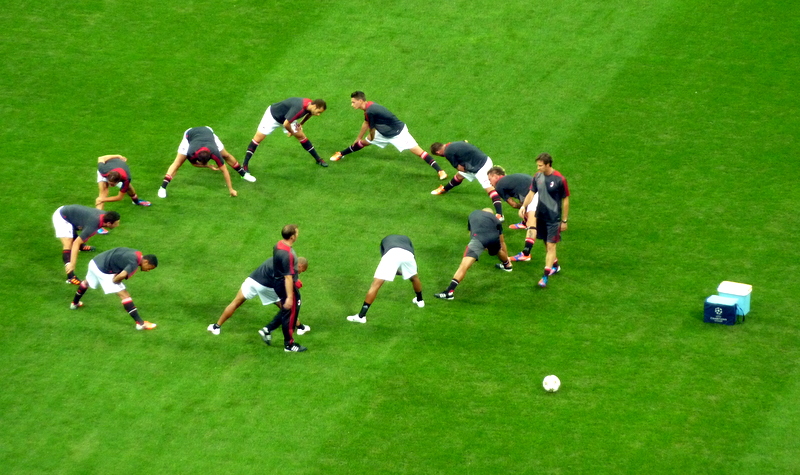 We got to our seats with over an hour left to the kick off, but at least we got to see the stadium in all its glory and a practice session, too. And I’m not talking about a team practice session either. AC Milan fans sat in their sectors long before the game started and successfully shouted down any noise a small group of Anderlecht fans was trying to stir up. The stadium even during the game was nowhere near its capacity, I’d even venture a guess it was only 1/3 of what it could have been, but the noise made by Milan’s fan club was still very impressive.