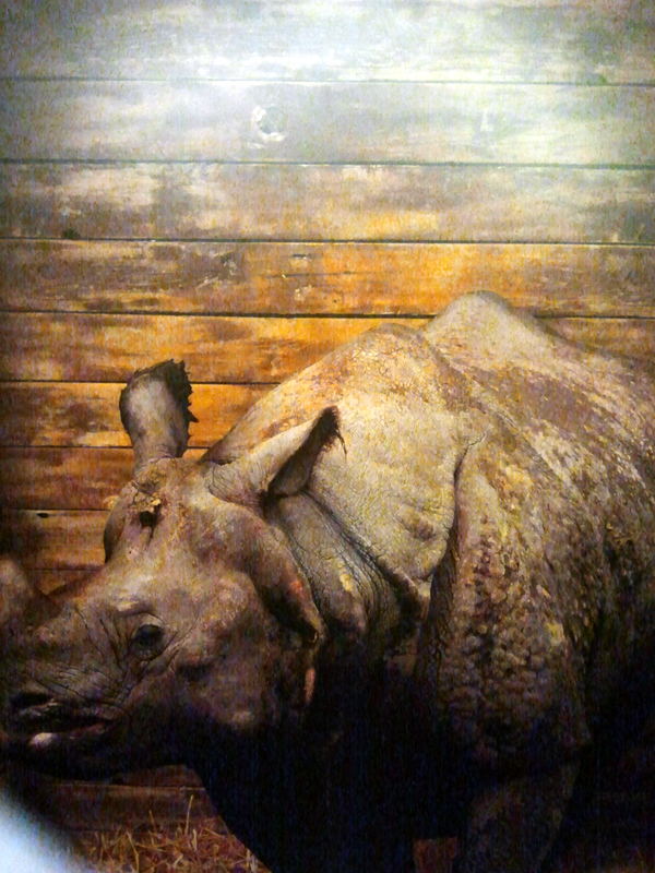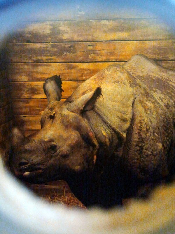 Upon inspection of the crate we noticed a small peeping hole on the side and sure enough there was a rhino sitting inside the box, albeit a small one.