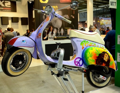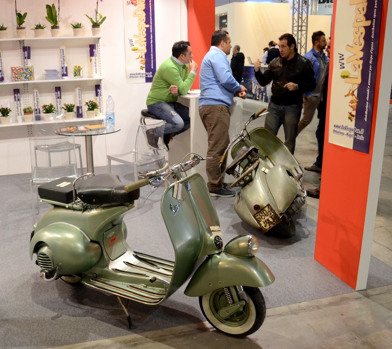 Because scooters is what we do I tended to naturally gravitate towards them no matter where I went. And since this was in Italy, the heartland of the scooter itself, there was plenty of scootering on display. Big and small, brand new and extremely vintage, slow and maxi speed monsters, scooter love was all around.