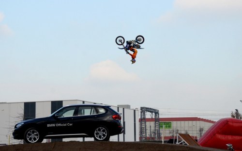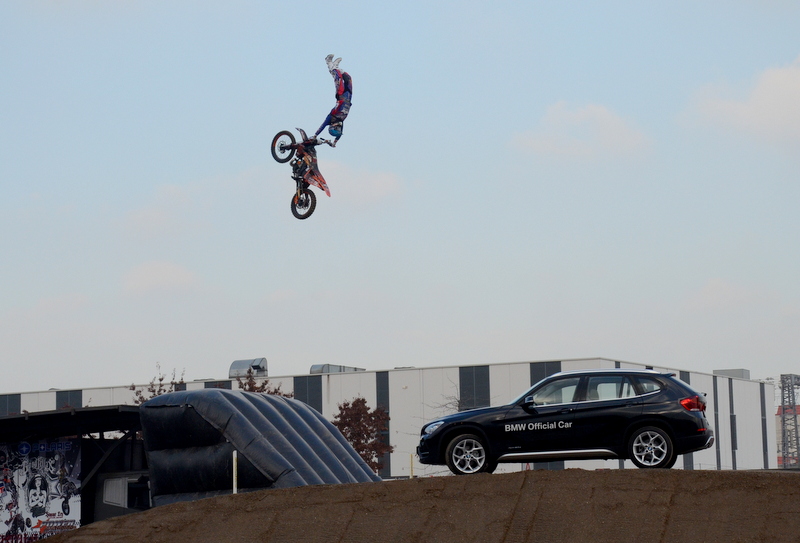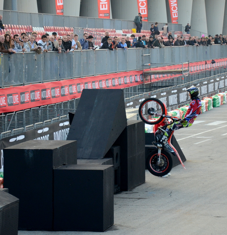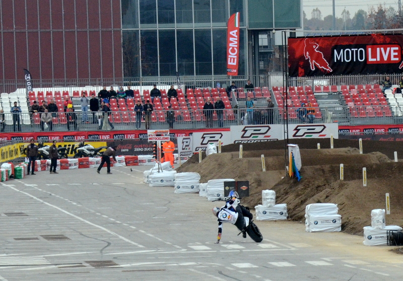 Right outside the hall and just beyond the Haribo booth with endless gummies!!!, was a parking lot where a whole lot of stuff took place constantly throughout the EICMA show. Cross bike races, quad races, trial bike shows, stunt riding, and the star of it all, Chris Pfeiffer. It was a lot of fun to see someone maneuver a motorcycle with such ease it makes it seems like child’s play.