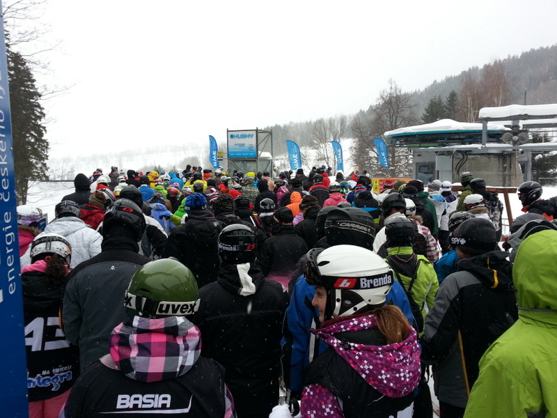 Our snow resort city of choice was Rokytnice, though we really aimed to go somewhere else but failed due to inadequate Czech road signage. Rokytnice however is a well known ski town and we still managed to have a very good time. The weather didn’t exactly spoil us throughout the day; it was rather chilly, windy, and snowed pretty much the entire day. That didn’t seem to matter to hundreds of skiers and snowboarders on site, most all of them Polish. That’s the funny part about skiing in Czech Republic, almost everyone there is Polish. And I don’t mean there’s a great percentage of Polish people skiing there, I really felt at times that I was simply skiing in Poland, that’s how many skiing Poles there were. Haha, get it? Ski Poles? Anyway…