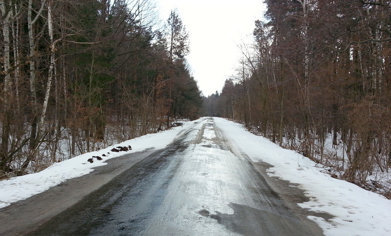 From there it was back on the road towards Sobótka, but as I got to the town itself I found the road had been closed off by local police for some sort of a cycling event. Alright, no biggie, there’s another way to get there… except there too I was met with a challenge. Somewhere along the way I forgot that even though it’s nice, dry, and semi-warm in Wrocław, road conditions and the temperatures at the mountain would be much different. I rode all the way to the point where snow and ice started… and turned back around.