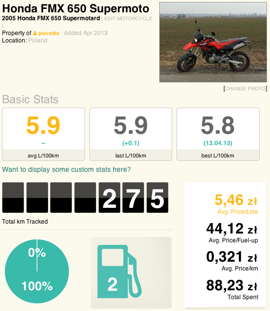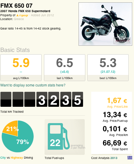 I found this site called Fuelly.com, I’ve never heard of it before and never really needed it either. But that’s where I found another FMX owner in Greece who’s been logging fuel ups for the past 3,000kms and basically proved to me that I’m just about average on my fuel consumption.