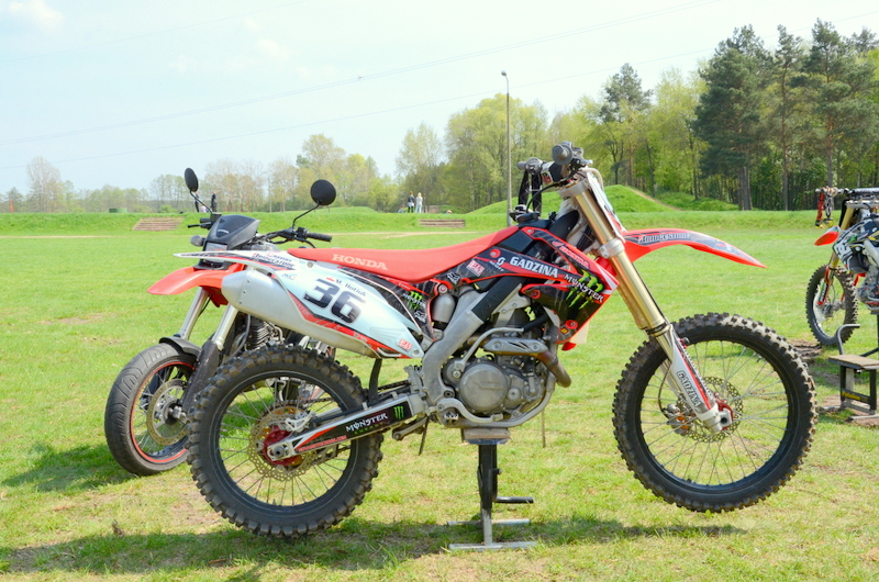 It took me about an hour and half to get to the track. It was a little funny parking my bike next to all the cross motorcycles. My FMX was born of a cross bike, but sitting next to true cross it felt oddly out of place with its mirrors, street tires, license plate and all. Mariusz offered me his XRF450 for a spin around the track but I wasn’t feeling like making a fool of myself in public just yet. I will gladly take him up on his offer one day but I need to try a dirt track with no witnesses first, or just man up but with better gear than jeans and a close face helmet.