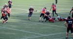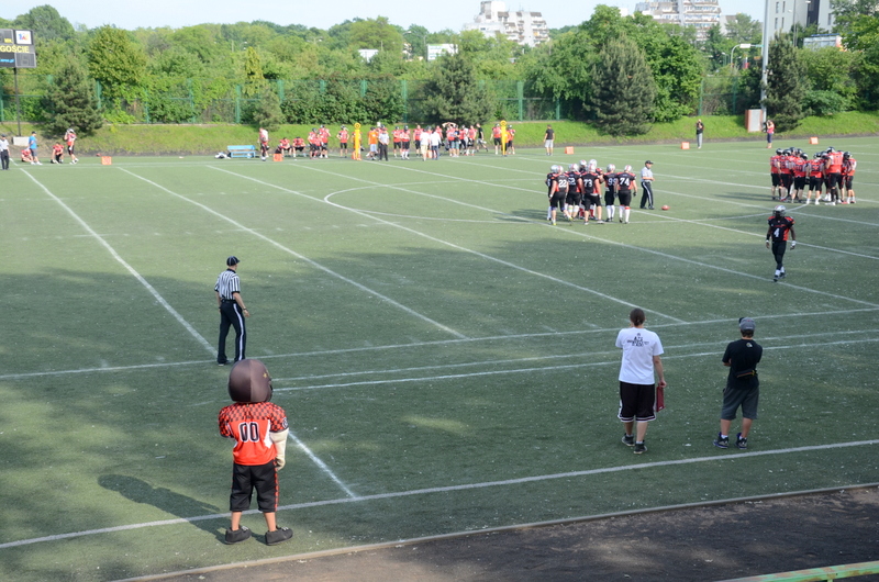 But Giants Wrocław is indeed the team I watched plow over Zagłębie Steelers (who got their name right!). The game wasn’t much of a game at all, it looked like a practice session for the Giants. It was even physically visible who was gonna take this game. Giants played at home and had some 25+ players standing on the side lines. Steelers looked like their bus broke down and all they could hitchhike over were the 11 that showed up. No special teams, no real subs, just the same guys playing different positions changing from offense to defence when necessary. It almost seemed unfair to be able to send in a whole different ‘special’ team when the other guys are the same guys just swapping positions. No time for rest.