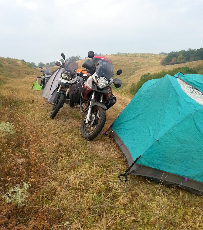Before writing about camping I should state that to me this trip was a lot of “firsts”. First time I visited Romania, first time I rode this far in a single day, first time I rode 150km/h on a motorcycle, first time I rode my Transalp off-road, and first time I camped out simply on the side of the road. Sure, that last one seems odd, funny even, but I’m an American-raised-by-the-book-California-kid, camping means permits and campsites to me 😉 In Romania however, you could set up a tent in a middle of an intersection and people would just drive around you. With that in mind, our Triumph leader found a good mountain spot and we followed him off-road to the site. I can’t say that I slept well that night, something about camping in gypsy country made me feel like I would wake up to nothing more than a pair of socks I was wearing. But all was well in the morning except for a curious cow that really took interest in our camp.