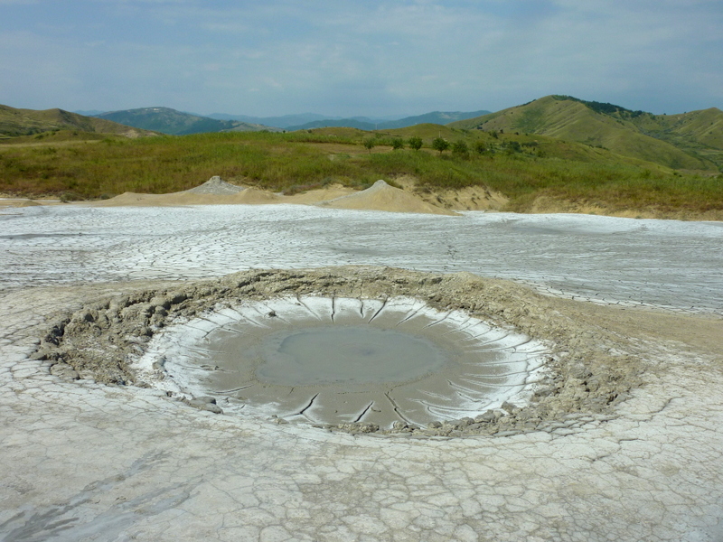 As gases erupt some 3,000 meters deep, clay and salty water are being pushed towards the surface creating small mud volcanoes. The mud is cold as it comes from Earth’s continental crust layers and as it dries out it creates the conical shape that can be seen on photos below. Due to high salt content of the mud no vegetation can thrive around this and the scene looks eerie desert like.