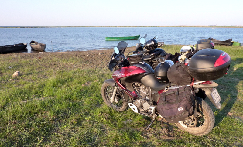With the heat getting more and more intense the closer we got to the coast, it was the first time the road simply ended as the massive Danube river ran through it. No bridges, just ferries, something a local resident blamed on the Ceausescu regime. We didn’t mind, first ferry ride for the Transalp. It was slowly getting dark by the time we were ready to find a place for the night when a speeding Dacia suddenly stopped in front of us and asked if we were looking for a place to sleep. To me it seriously looked like we were about to lose our stuff, but the campsite turned out to be legit and after brief price haggling we set up camp.