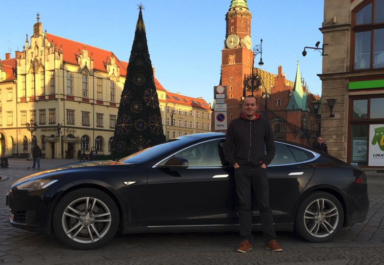 Tesla’s are not a common sight in Poland and I haven’t seen one personally anywhere in Wrocław. There are only 12 registered Teslas Model S in all of Poland at the time of this writing, a country of roughly 38million people. But chances of encountering the 13th Tesla have been greatly improved as its owner Dawid Guzenda (seen above) started a personal site on Facebook called “Moja Tesla”, pronounced “Moya Tesla” meaning “My Tesla” in Polish, detailing the everyday ownership of his beloved Model S.