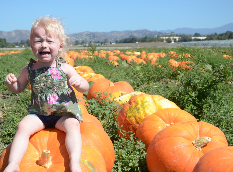 We actually stumbled upon that field by accident and just decided to pull the car over and take some photos. Emma, however, wasn’t having any of it and didn’t appreciate all the pumpkin awesomeness around her.