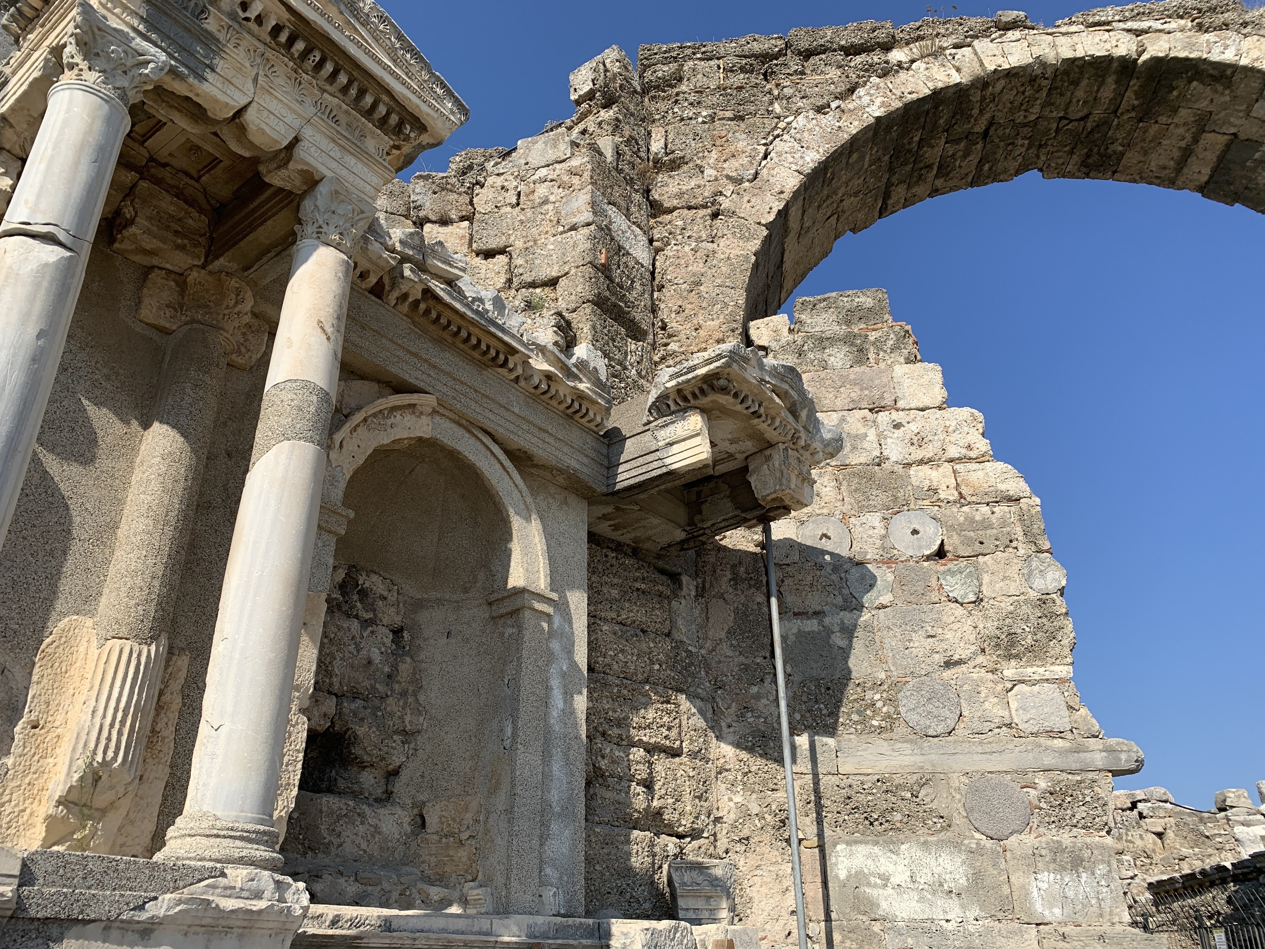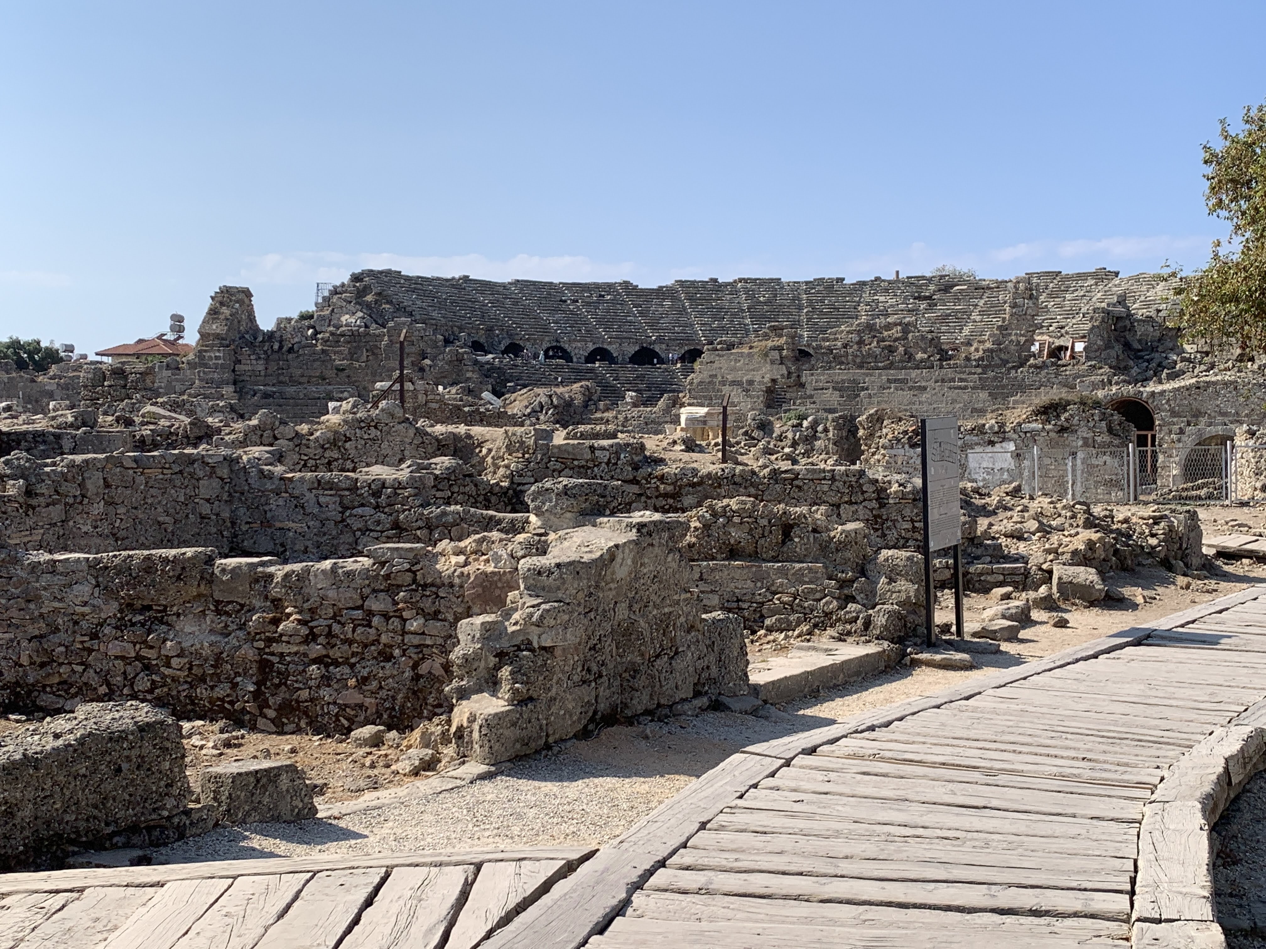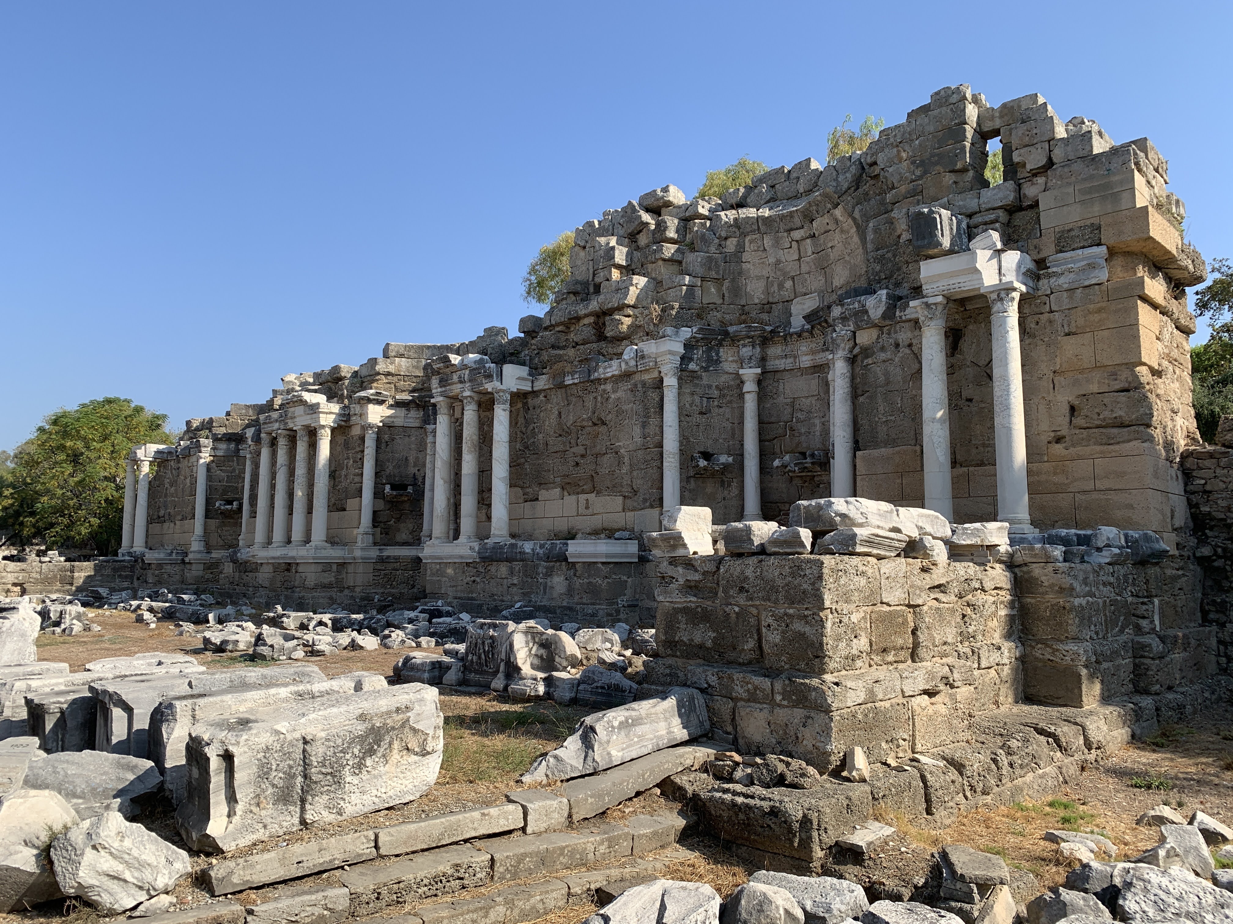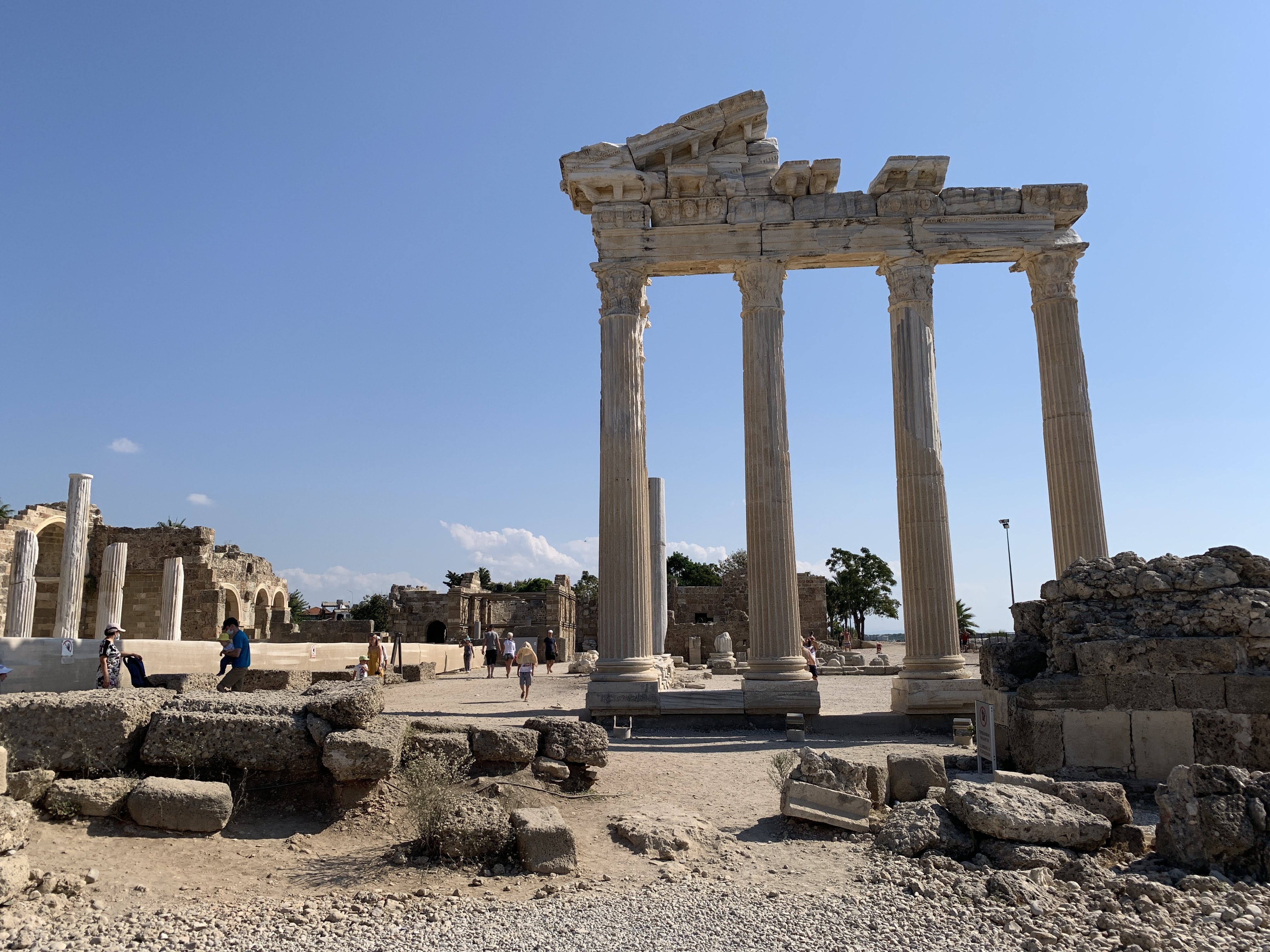 The city of our destination was Side, an ancient city founded in 7th century BC. A Wikipedia link for historical info is HERE but as you can see from our photos the area is a rich archeological site with the Temple of Apollo standing tall as its main attraction.